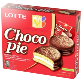 Choco Pie — нежный бисквитное печенье с уникальной начинкой из маршмеллоу, покрытый шоколадной глазурью. Возьмите с собой, чтобы полакомиться в любое время и в любом месте! Качество десерта не подлежит сомнению: запатентованная технология производства и индивидуальная упаковка позволяет Choco Pie оставаться мягким и свежим надолго. Choco Pie готовятся без консервантов, искусственных красителей и глутамата натрия. Не содержит трансжиров.